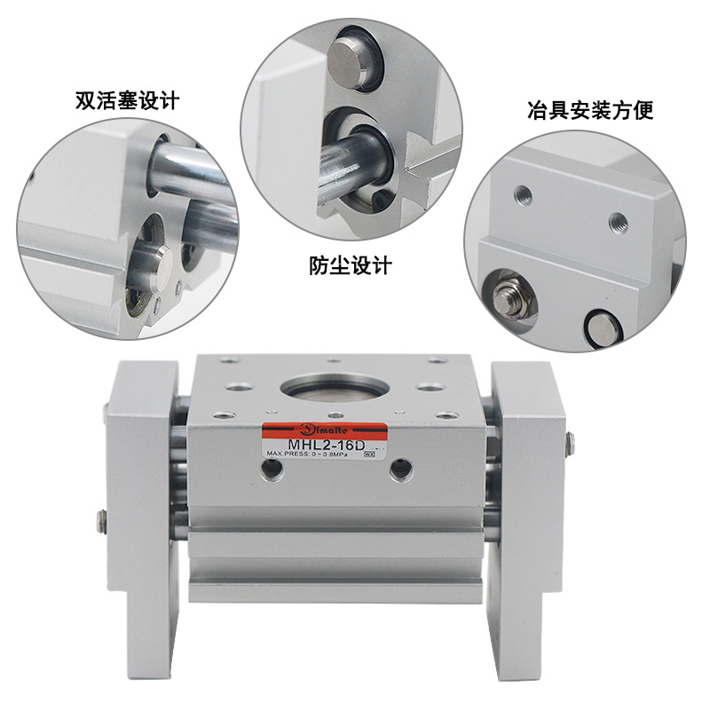 3、MHL2系列手指氣缸采用齒輪齒條操作,令手指能同步開閉,重復精度高;